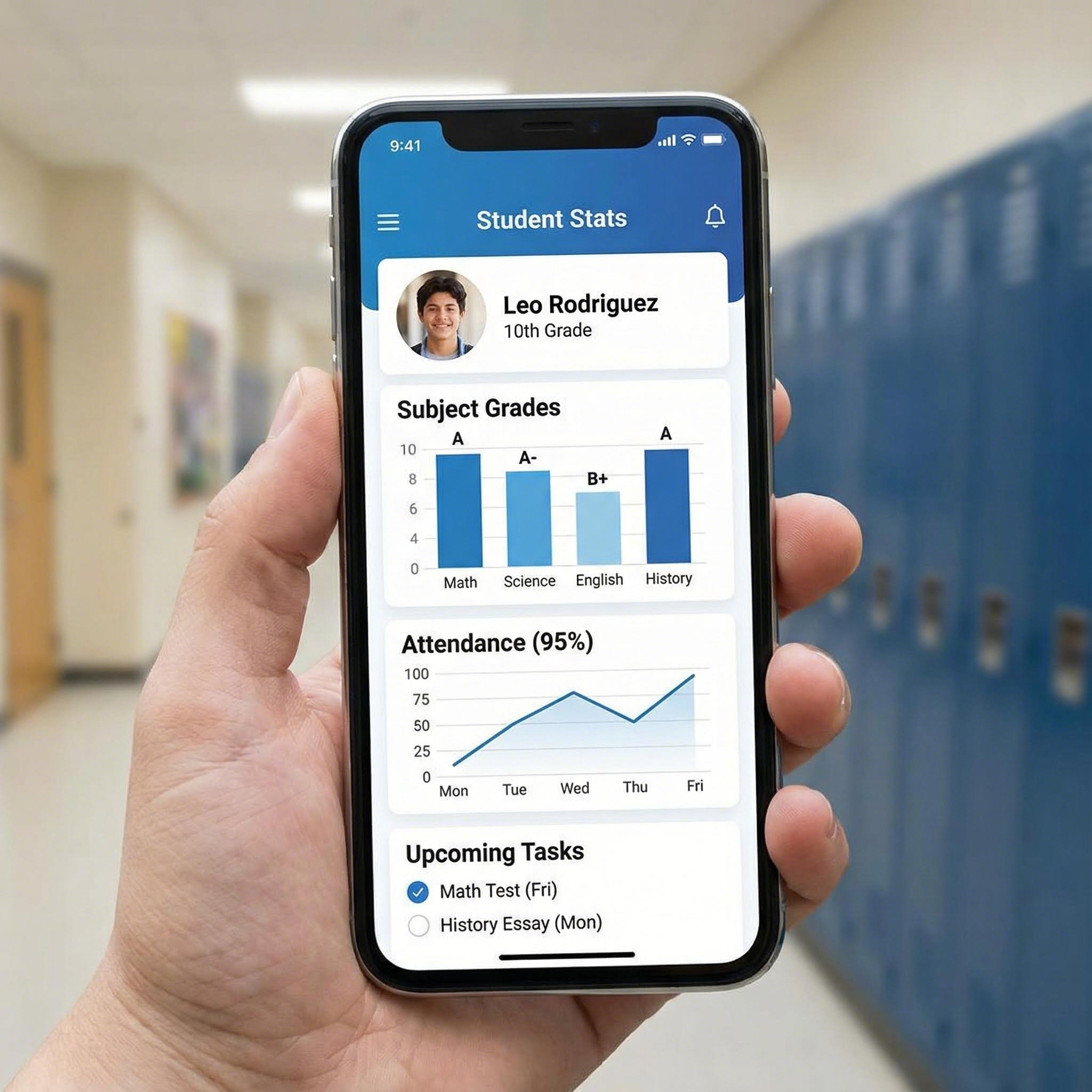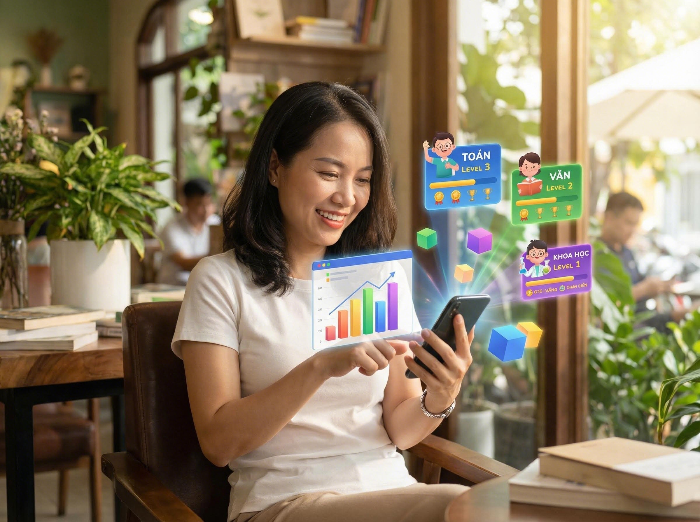 App di động hỗ trợ phụ huynh theo dõi tiến độ, kết quả học tập của con và nhận thông báo kịp thời cùng báo cáo trực quan, gợi ý hỗ trợ học tập tại nhà hiệu quả.