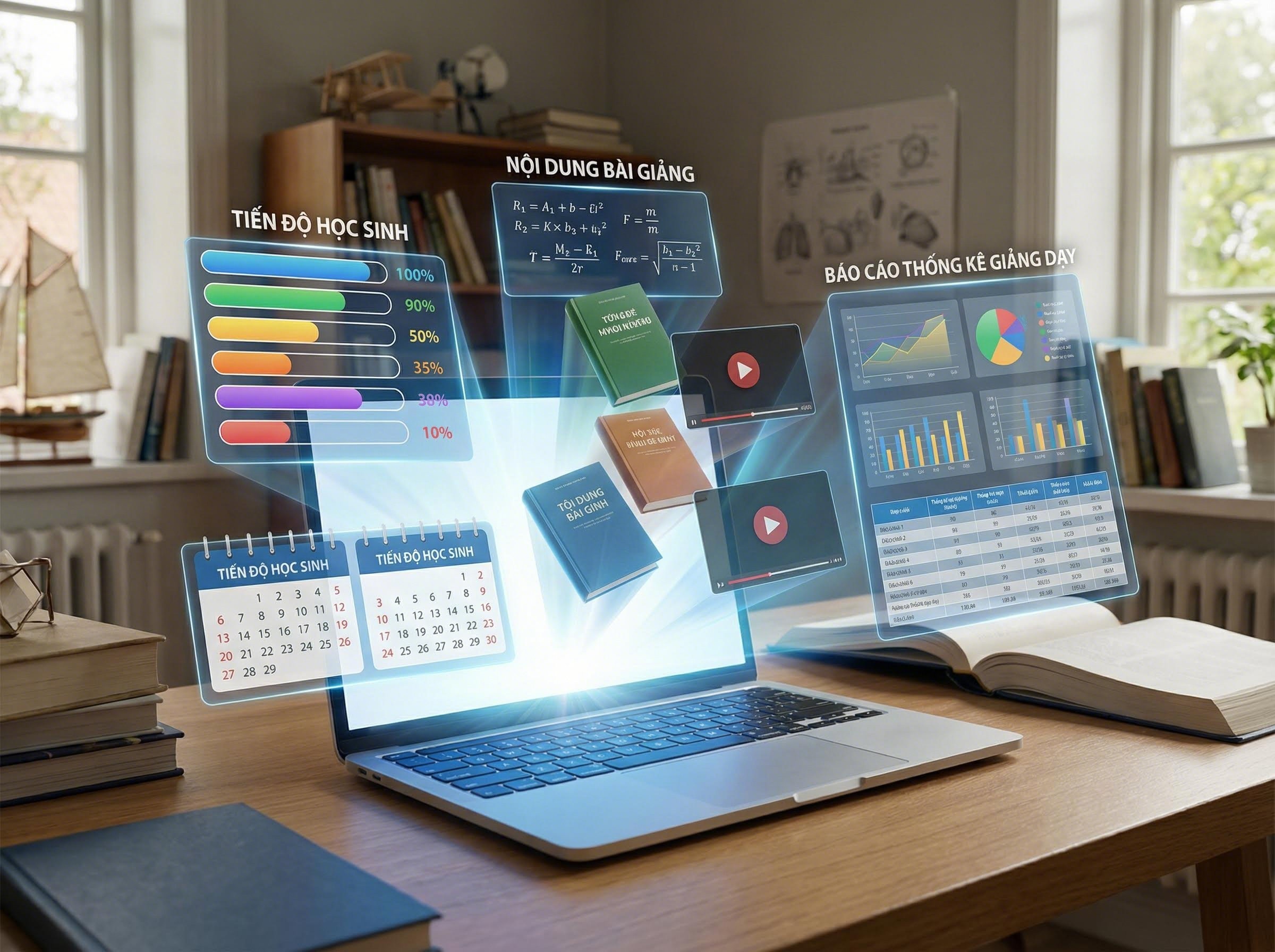 Website giúp giáo viên, nhà trường quản lý lộ trình học, tiến độ và bài giảng qua báo cáo thống kê chi tiết với giao diện trực quan hỗ trợ xây dựng, kiểm duyệt nội dung giảng dạy hiệu quả.